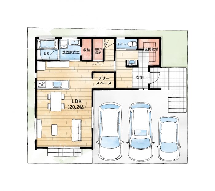 4LDK+ウォークスルー土間収納+フリースペース+駐車場3台可