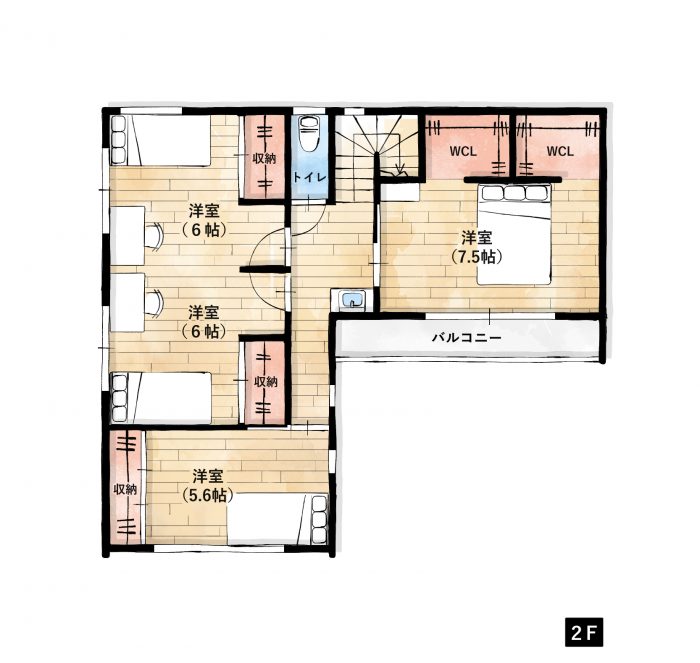 また2Fは将来間仕切りを行えば2室使用もできるような子供室をご準備しております。