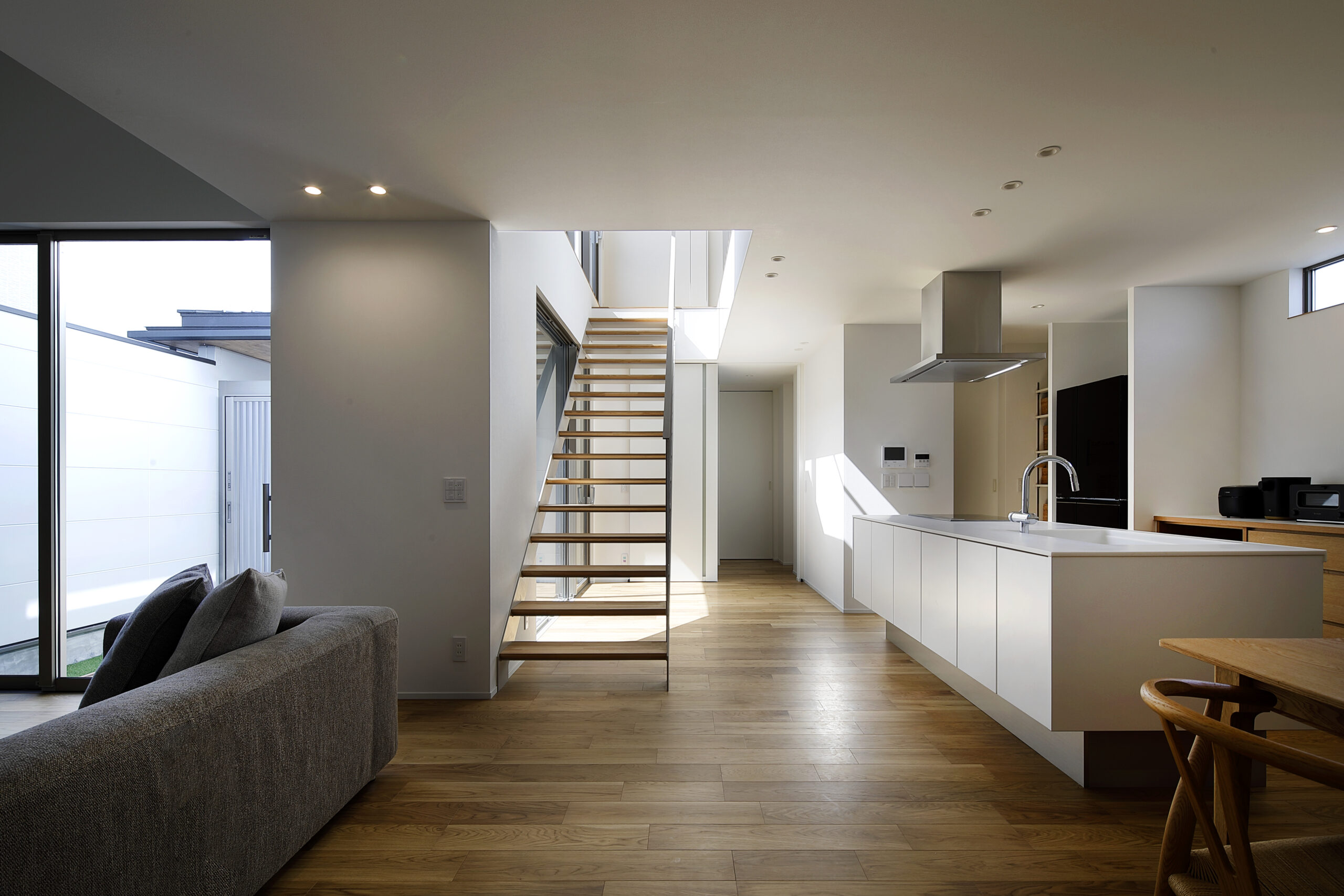 リビング階段の吹抜と中庭に面したから光が差し込む、解放感あふれる空間設計。風通しも良く、心地よい時間が室内を流れます。